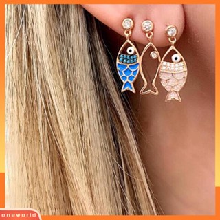 [WOD] 3pcs/set Bohemian Berongga Ikan Berlian Imitasi Pesona Stud Anting Wanita Perhiasan Hadiah