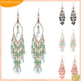 < Freshbread > Anting Retro Manik-Manik Resin Romantis Bohemian Bulu Rumbai Fringe Earrings Untuk Wanita