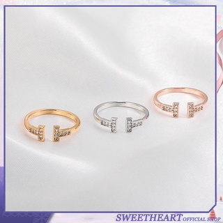 2022 Cincin Open Ring Adjustable Desain T Ganda Warna Silver Untuk Wanita