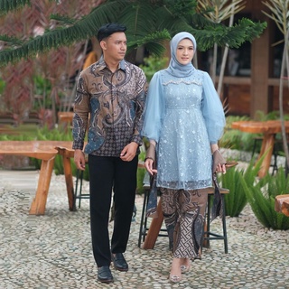 NEW ARRIVAL - BISA COD BATIK COUPLE KEBAYA BRUKAT KEBAYA MELA BLUELIGHT - KEBAYA COUPLE BROKAT TULE PREMIUM - KEBAYA WISUDA TUNANGAN LAMARAN WISUDA - OUTFIT KONDANGAN BAJU PESTA PASANGAN SARIMBIT KEKINIAN