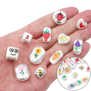 Abs Manik-Manik Mutiara Lukisan Dicetak Bunga Hati Lebah Strawberry Pattern Beads Untuk Kalung Gelang Anting Perhiasan Craft Membuat Aksesoris