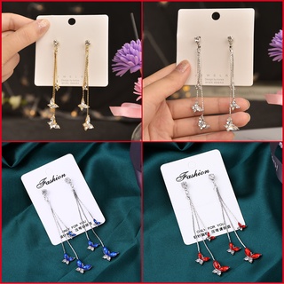 Anting Tusuk Gantung Desain Kupukupu Hias Kristal Zirconiarumbai Warna Gold Gaya Korea Untuk Wanita