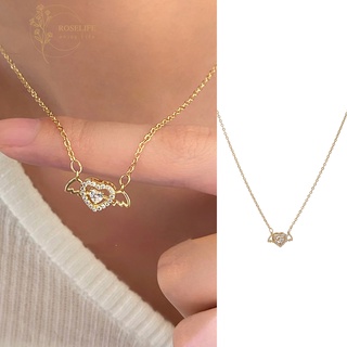 Roselife Kalung Rantai Dengan Liontin Hati + Sayap Cupid Aksen Kristal Untuk Wanita