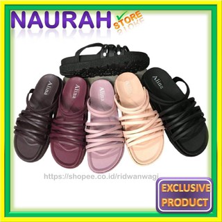 SENDAL WANITA SLOP TALI BANYAK ALINA F 1986 WEDGES JELLY TEBAL KUALITAS BAGUS TAHAN LAMA ANTI SLIP