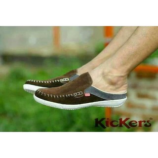 MS SHOP - BRANDED - Sepatu Pria Kickers Stiching Coklat Kasual Slop Santai Bustong Cowok Termurah
