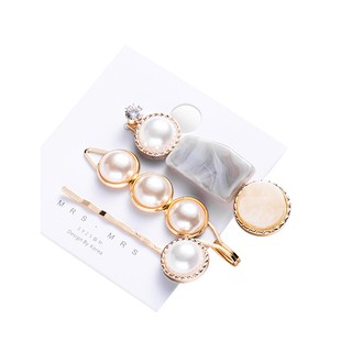 LRC Jepit Rambut Fashion Irregular Pearl-studded Metal Hair Clip Set F46400