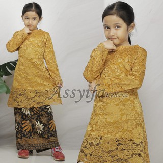 Stelan Kebaya Lina Kartini Brukat Dan Rok Plisket Batik Jumbo Anak Perempuan