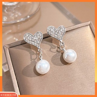 [WOD] 1pasang Anting Menjuntai Shiny Ear Decoration Gaya Korea Berlian Imitasi Cinta Hati Mutiara Imitasi Temperamen Anting Tusuk Untuk Pacaran