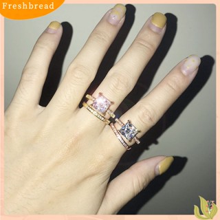 < Freshbread > 2 Pcs Cubic Zirconia Rings Shiny Square Faux Crystal Alloy Ring Elegan Perhiasan Aksesoris Temperamen Wanita Jari Cincin Set Pertunangan Hadiah Fashion Perhiasan