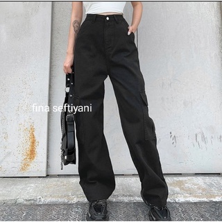 Celana Cargo Hitam Selgi wanita Streetwear Hippie