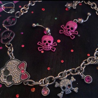 Mxbeauty Y2K Kalung Tengkorak Punk Populer Liontin Kalung Pin Fashion Perhiasan Skeleton Baja Titanium Kristal Pusar Kuku