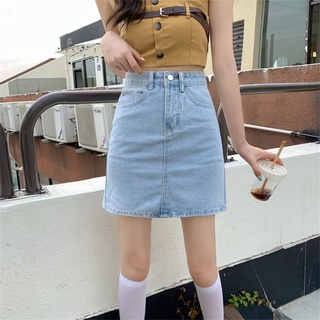 Rok Denim Rok Jeans Rok Pendek Fshion Wanita Pinggang Tinggi Skirt Korean Style Rok Vintage Simple(realpict)
