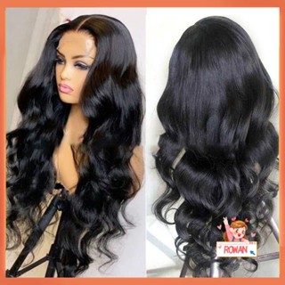 R-flower Wig Wanita Middle Score Rambut Tebal Pakaian Wanita Garis Suhu Tinggi Roll Panjang