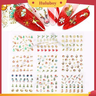 Huluboy Huluboy♡ 3pcs / Set Stiker Kuku 3D Motif Natal Warna-Warni Untuk Manicure