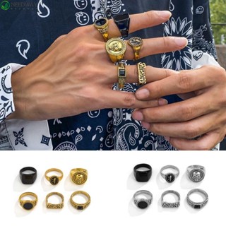 6pcs / set Cincin Bentuk Tengkorak Geometris Gaya Korea Retro Vintage Warna-Warni Untuk Pria