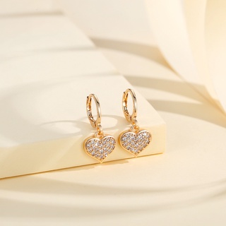 Y683【Barang spot】Anting Kristal Korea berbentuk hati Berlian Bahan Titanium Steel Anting berbentuk hati Berlapis Emas