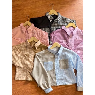 VS - KEMEJA OLIVIA TWO TONE MOTIF TARTAN / KEMEJA CROP TOP WANITA TWO TONE