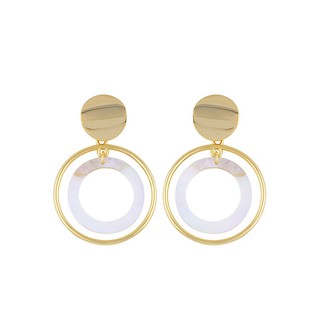 LRC Anting Tusuk Fashion Golden Shell Round Hollow Alloy Earrings A61240