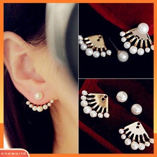 [WOD] 1pasang Alloy Ear Stud Charming Hias Faux Pearl Stud Earrings Aksesoris Telinga