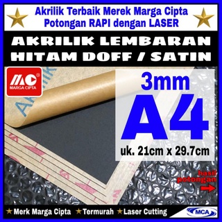 AKRILIK lembaran HITAM DOFF / SATIN 2mm A4 / Marga cipta / Acrylic