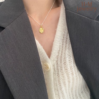Kalung Rantai Liontin Oval Motif Smiley Face Warna Emassilver Untuk Wanita