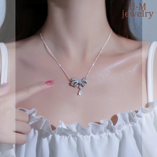 Kalung Rantai Dengan Liontin Pita Aksen Berlian Imitasi AAA Untuk Wanita