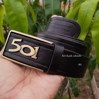 Sabuk ikat pinggang pria kulit asli 501 Ikat Pinggang Rel Otomatis Dari Kulit Sapi