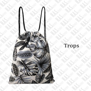Tas Serut Gymsack Pria Wanita Motif Keren Kanvas Import Korea Tropikal Hitam