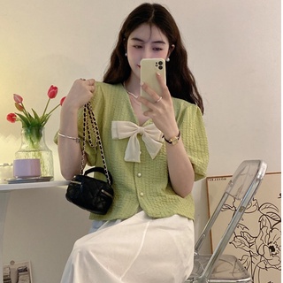 Kemeja lengan pendek Prancis musim panas wanita 2022 desain baru rasa niche retro angin lembut atasa