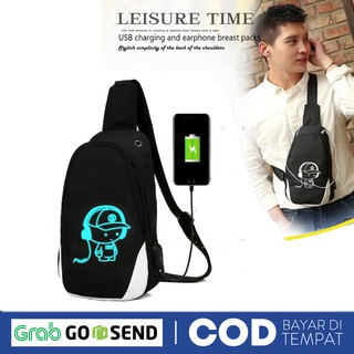 Highland Tas Selempang USB Tas Pria Charger Bling Bag Import Batam Tas Dada Luminous Anti Air TCS04