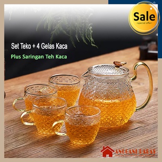 Teko Set Gelas Teko Teh Dengan Saringan Kaca Tahan Panas Borosilicate Glass 600ml