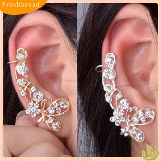 < Freshbread > Retro Faux Crystal Butterfly Flower Ear Cuff Stud Earring Clip on Untuk Telinga Kanan
