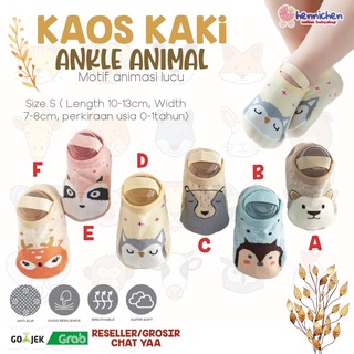 KAOS KAKI BAYI KARAKTER ANIMAL ANKLE DENGAN ANTI SLIP 0-12 bln