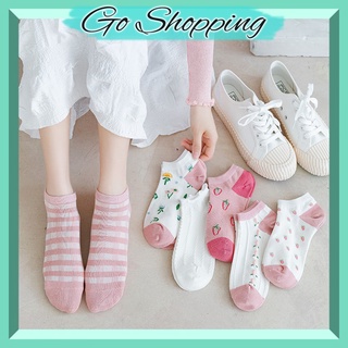 GOGO-P189 Kaos Kaki Wanita Motif Stroberi Bunga Fashion Korea / Kaus Kaki Pendek Semata Kaki Wanita / Strawberry Ankle Sock Korean Style