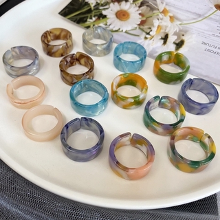 Retro Resin Opening Ring Acrylic Knuckle Ring Fashion Mix Color Jelly Ring for Women Ladies Jewelry