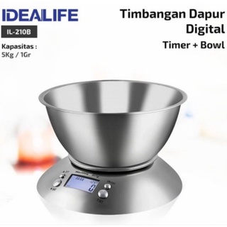 IDEALIFE IL 210B Timer & Bowl - Timbangan Kue / Dapur Digital 5kg ORIGINAL