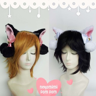 Bando kucing nekomimi pita bola bulu pompom buffy kawaii cat ears cosplay fashion lolita bell