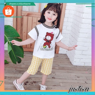 Promo !! Setelan baju anak cewek - setelan hey chess bear happy import uk 1-5thn DOMINAN SIZE 80