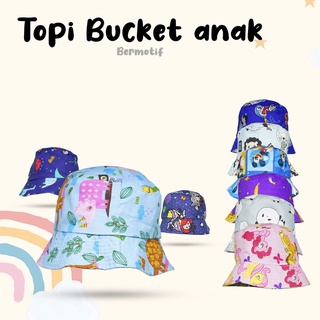 Topi Bucket Anak Bolak Balik Motif Karakter / Topi Anak Karakter 3-8 Tahun / Bucket Anak Lucu