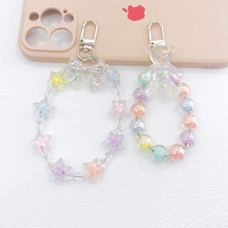 3d Manik-Manik Bintang Beruang Dan Busur Transparan Anti Hilang Rantai Ponsel Case Bluetooth Earphone Cover DIY Liontin Untuk iPhone Untuk Airpods Untuk Samsung Untuk OPPO Untuk Baseus Untuk Inpods