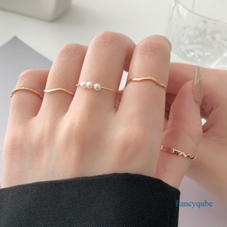 5pcs/set Cincin Logam Set Sederhana Mewah Mutiara Geometri Adjustable Jari Rings Wanita Perhiasan