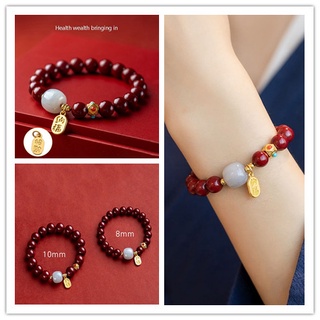 Gelang Manik Cinnabar Imitasi 8mm 10mm Warna Emas Untuk Priawanita