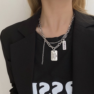 Kalung Rantai Dengan Liontin Bentuk Kotak Motif Tulisan Gaya Hip Hop