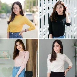 #Sisjuly# Kaos Turtleneck Seksi Warna Solid Kaos Bawahan Ketat Atasan Warna Polos