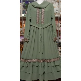 Gamis anak usia11/12Pariasi Renda besar gold ,di lengkapi hijab panjang pasmina/gamis model terbaru variasi renda besar