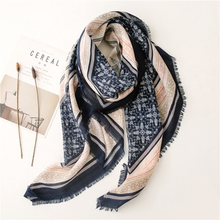 ITSFRIDAY ORNELLA In NAVY Scarf - Premium Selendang Square Syal Shawl Segi Empat Hijab Import Motif Etnik Geometri Navy Cream