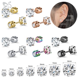 1 Pc Anting Stud Zircon Warna-Warni Bahan Stainless Steel Bentuk Bulat Ukuran 2-5mm