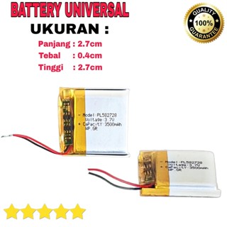 Baterai Original Universal PL582728 UNTUK Headset Bluetooth , speaker , Jam pintar , Smart Watch , Game boy , mainan anak anak Ukuran Battery Panjang 2.7 Cm Tinggi 2.7 Cm Tebal 0.4 Cm Ukuran Kabel 3 cm