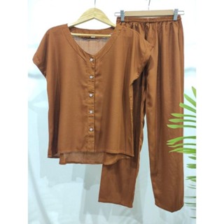 STELAN V NECK ON SET JUMBO RAYON LD 120 CM PA 65 CM PANJANG CELANA 115 CM