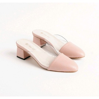 Sepatu Sandal Half Heels Wanita (Big Size 40 41 42 43 44 45) Sendal Slide Kulit Cewe Ukuran Kaki Jumbo Besar Heel 7 cm
